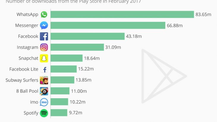Infografiku i mëposhtëm tregon aplikacionet më të shkarkuar në Play Store gjatë muajit Shkurt 2017.