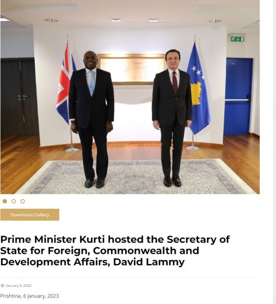 “Zyra e Kryeministrit në Prishtinë ka njoftuar takimit me zotëri Lammy sikurse “Kryeministrit Kurti ka pritur Sekretarin i Shtetit për Çështjet e Jashtme, Komonuelthit dhe Zhvillimit, David Lammy”, ka shkruar gazeta krejt në fund të artikullit për gabimin e ZKM-së.