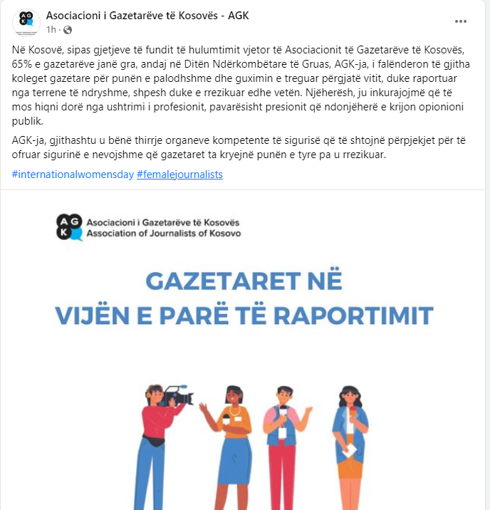 Kështu thuhet në hulumtimin vjetor të prezantuar nga Asociacioni i Gazetarëve të Kosovës, me rastin e 8 Marsit- Ditës së Gruas.