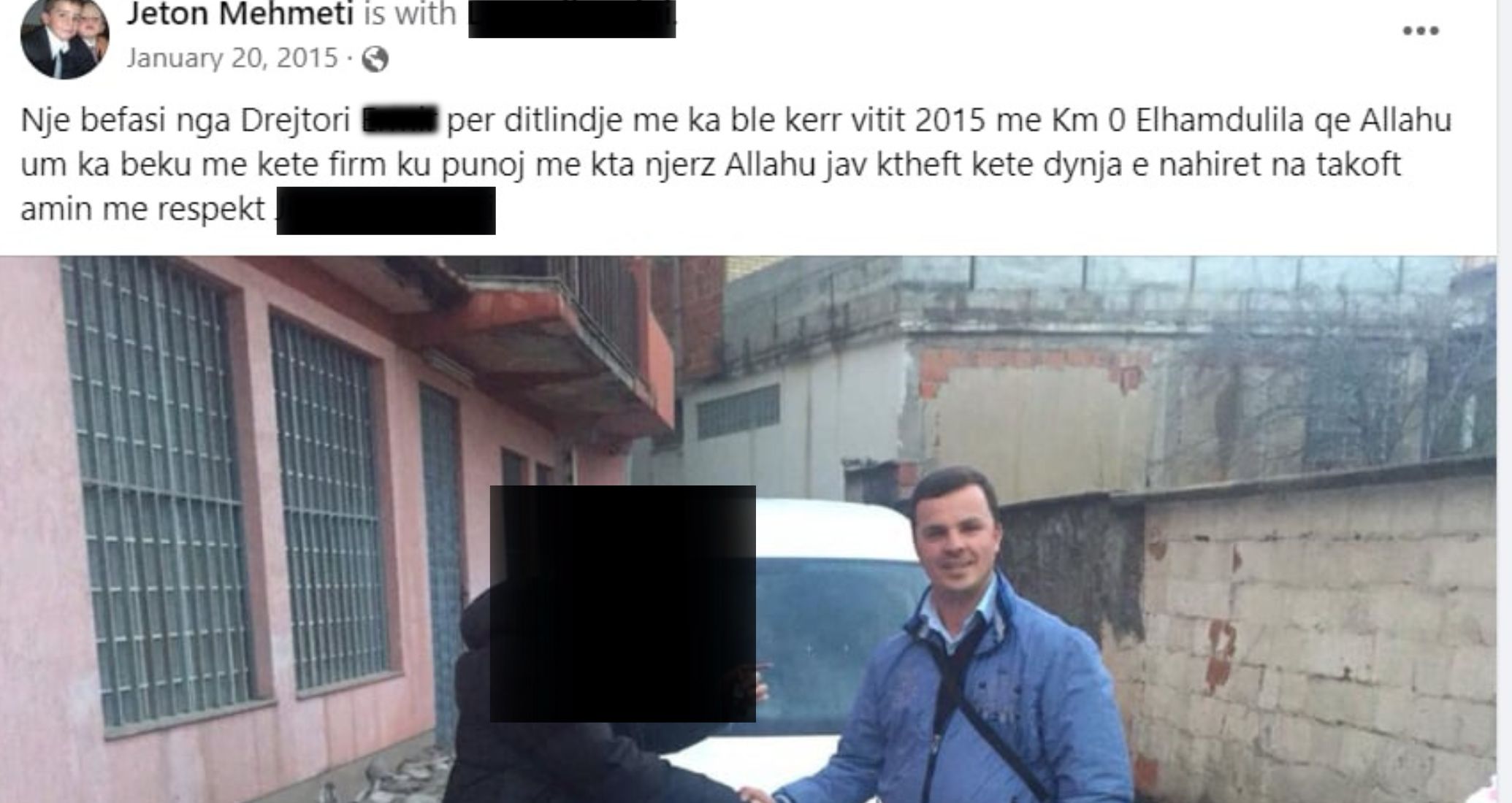 Në një postim që Mehmeti kishte bërë në facebook, kishte njoftuar se si firma “Trokadero” i kishte blerë një veturë.