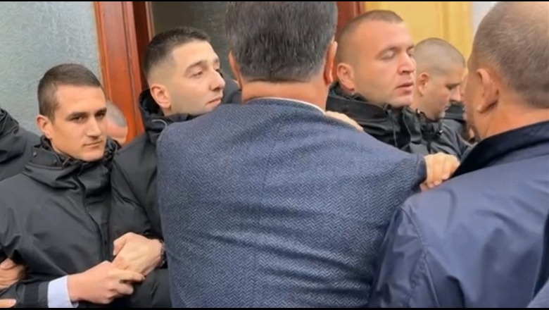 Në një moment, Noka tërheq me forcë një prej punonjësve. Shihet se si e tërheq për qafe dhe xhakete me qëllim që të hapë kordonin e krijuar nga Garda që i pengon të futen brenda. Në ndihmë i ka shkuar edhe deputeti Lefter Gështenja.