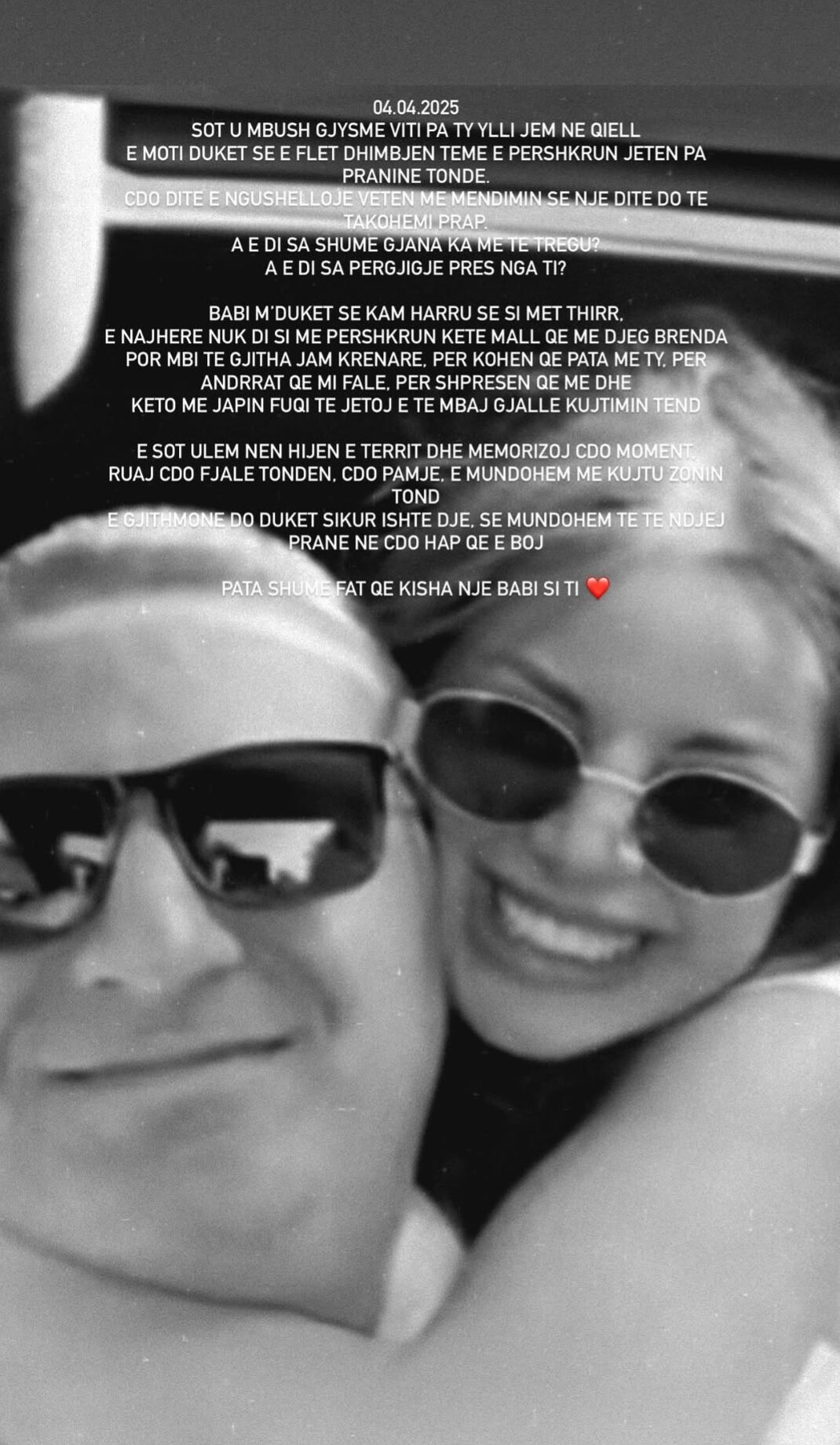 “Sot u mbush gjysmë viti pa ty ylli jem në qiell. E moti duket se e flet dhimbjen teme, e përshkruan jetën pa praninë tande. Çdo ditë e ngushëlloj veten me mendimin se një ditë do të takohemi prap”, shkruan ajo.