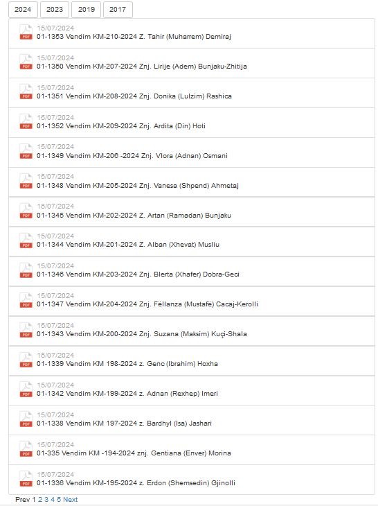 Në uebsajtin e Ministrisë së Drejtësisë, deri tani janë publikuar vendimet për emërimin e mbi 40 noterëve.
