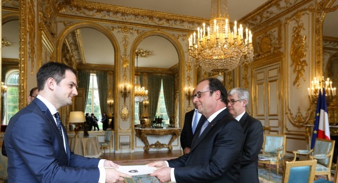 Dje në pallatin Elysée në Paris, Ambasadori i Republikës së Kosovës, Qëndrim Gashi, i dorëzoi letrat kredenciale presidentit të Republikës Frances, François Hollande.