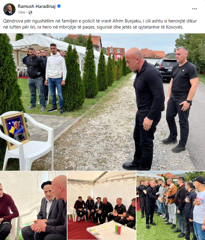 Kryetari i AAK-së Ramush Haradinaj, ka shkuar për ngushëllime tek familja e policit të vrarë sot në Banjskë të Zveçanit.