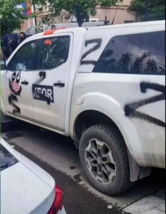 Po ashtu, në veturat e Njësisë Speciale të Policisë së Kosovës në veri, dhe në veturat zyrtare të KFOR-it huliganët kanë shkruar me ngjyrë të bardhë simbolin kombëtar të serbëve, ndërsa me ngjyrë të zezë shkronjën “Z” e cila është bërë simbol i mbështetjes për pushtimin rus të Ukrainës.