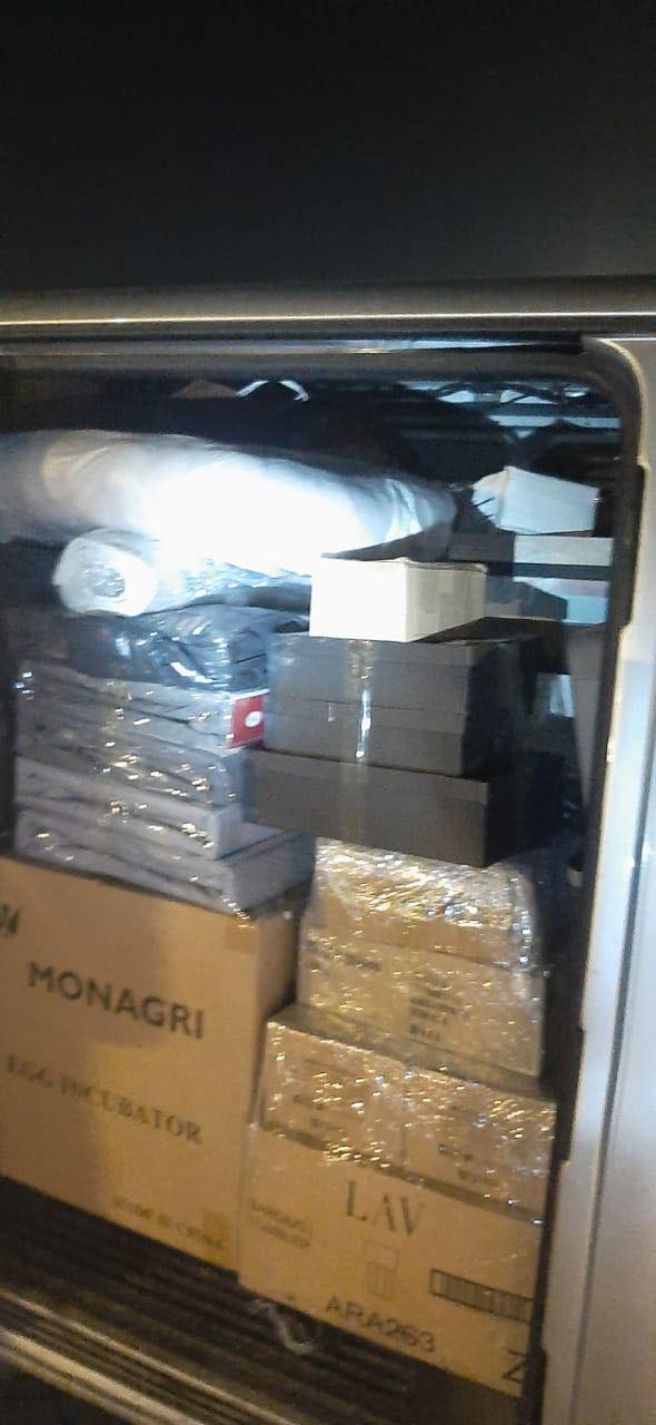 Gjatë kontrollit të automjetit bëhet e ditur se është hasur ne mallra te ndryshme si: mbathje sportive pa fatura , të markave tregtare të mbrojtura që dyshohet se janë të falsifikuara.