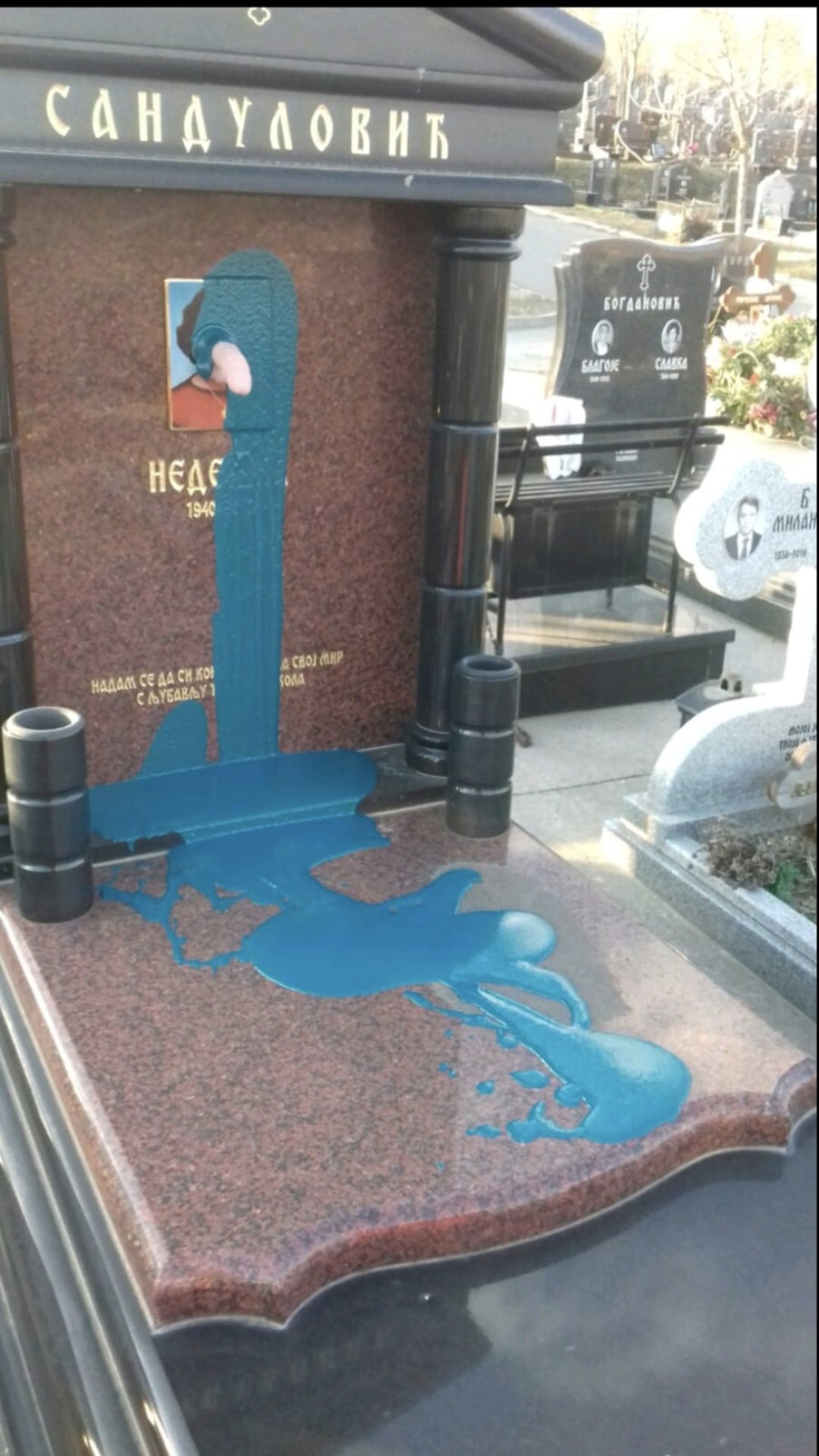 Yesterday they desecrated the grave of Nikola Sandulović's mother because he laid flowers on the grave of the murdered seven-year-old Albanian… pic.twitter.com/cK0Q5UtCDL— Nikola Sandulovic (@Sandulovic_N) February 15, 2024