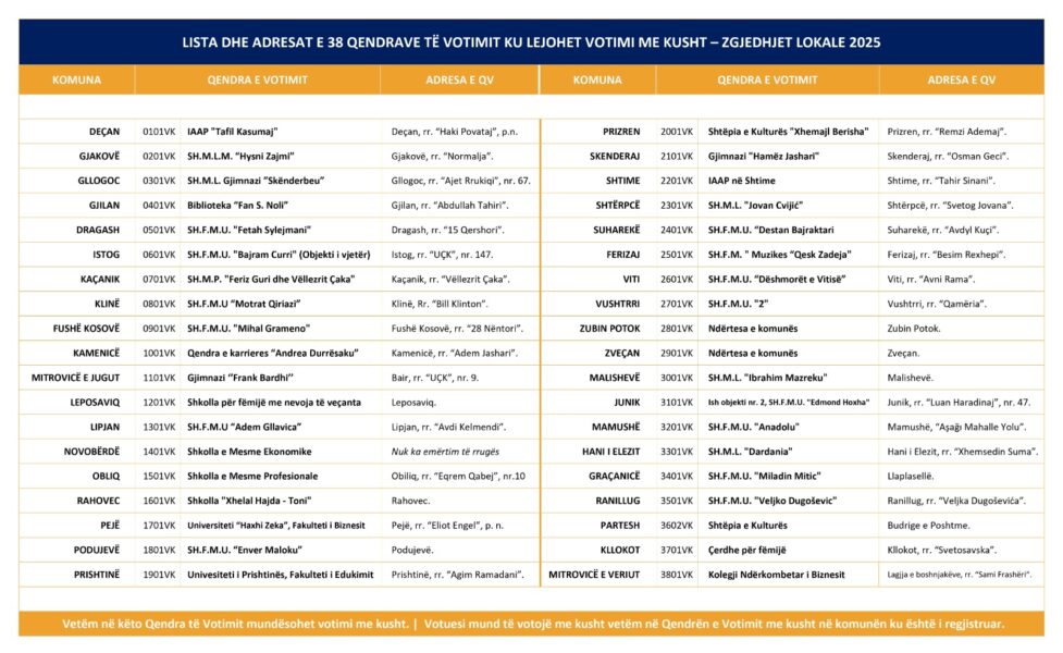 Këto janë adresat e 38 Qendrave të Votimit për votimin me kusht në Zgjedhjet Lokale 2025