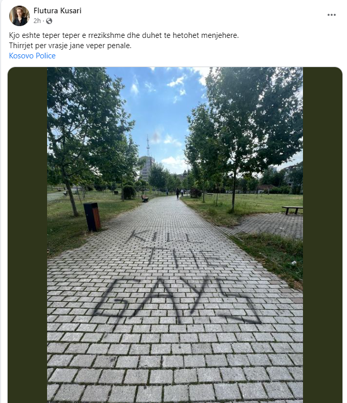 Juristja për media, Flutura Kusari, ka reaguar pas mbishkimeve ndaj komunitetit LGBTI+ “Kill the gays” në rrugët e Prishtinës.