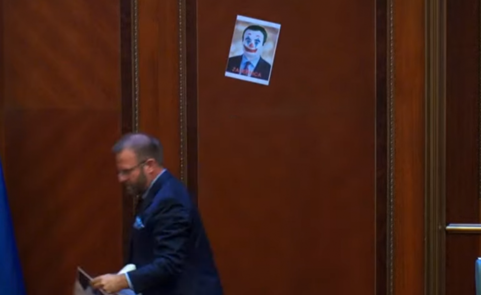 Teksa Kurti po e mbante fjalimin për takimin në Bruksel, Abazi ka vendosur në hapësirat e Kuvendit të Kosovës fotografin e tij si “palaço”, shkruan Insajderi.