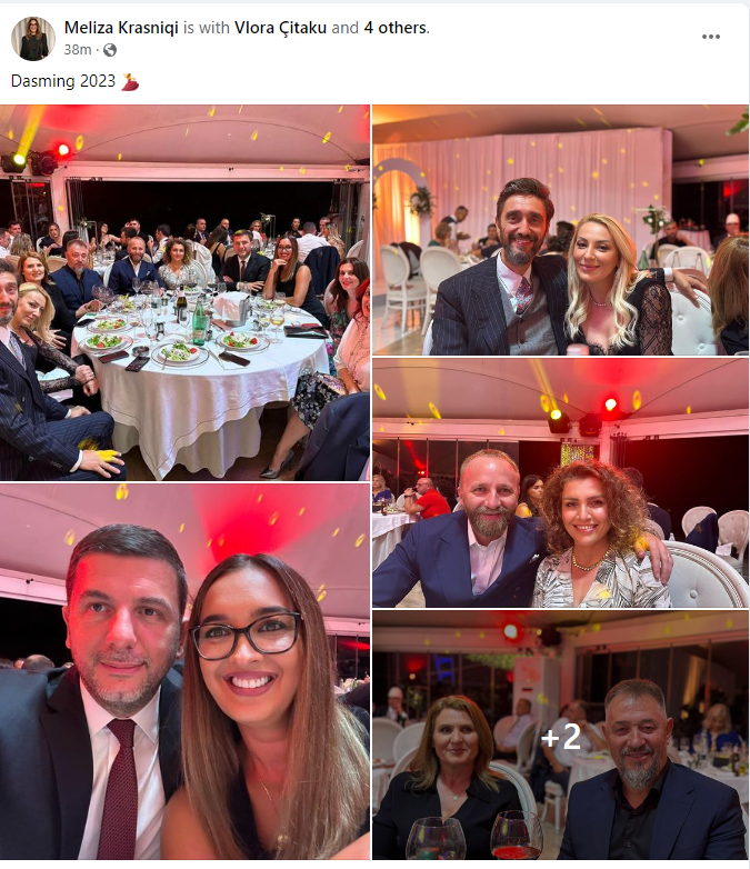 Zyrtarë të Partisë Demokratike të Kosovës (PDK), janë në një dasmë. Për këtë ka postuar fotografi në Facebook, Meliza Krasniqi, bashkëshortja e kryetarit të kësaj partie opozitare, Memli Krasniqi.