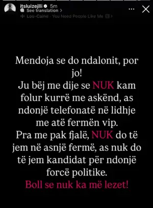 Luiz Ejlli ka reaguar ashpër ndaj spekulimeve që po qarkullojnë rreth emrit të tij në rrjet. Përmes një postimi në Instastory, këngëtari mohon kategorikisht çdo përfshirje në programin “Ferma VIP” apo në ndonjë forcë politike.