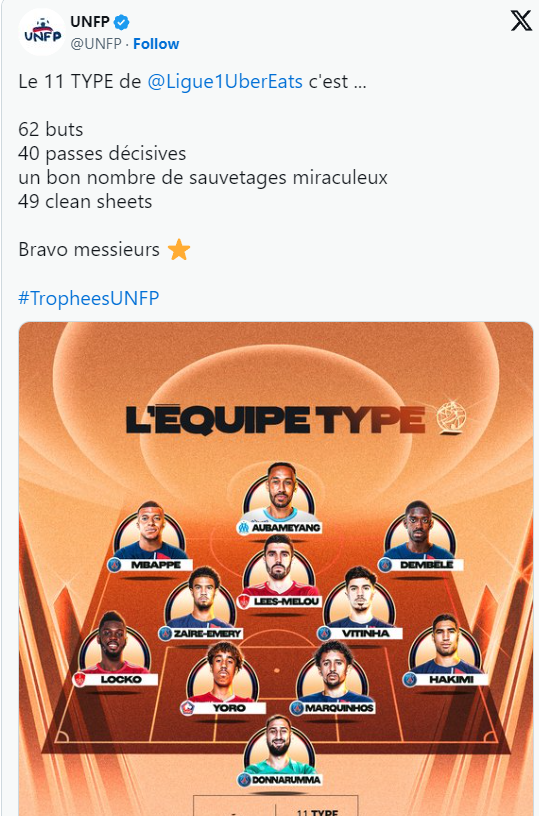 𝐊𝐲𝐥𝐢𝐚𝐧 𝐌𝐁𝐀𝐏𝐏𝟓 ⭐️ 5e Trophée UNFP consécutif de meilleur joueur de @Ligue1Ubereats pour @kylianmbappe