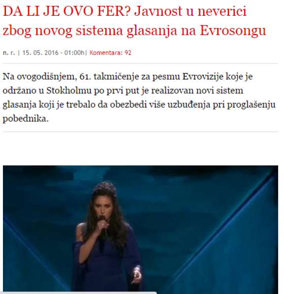 Blic.rs e ka quajtur këtë një vendim jo të denjë, njëjtë sikur komplet sistemin e votimit që ndodhi këtë vit, kur deri në fund nuk dihej fituesi.