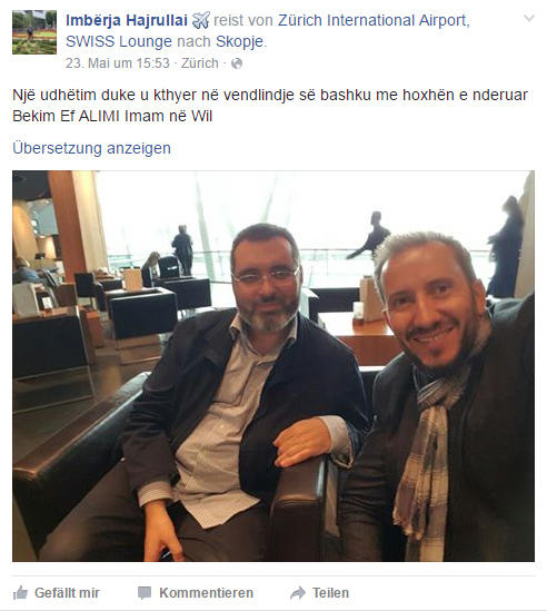 Vetëm dy javë më parë Imami shqiptar i qytetit zviceran Wil, Bekim Alimi, ishte fotografuar me një qytetar tjetër të Zvicër, Imbërja Hajrullahi, derisa po udhëtonin për Shkup nga aeroporti i Zyrihut.