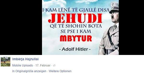 Siç shkruan portali zviceran 20min.ch, kjo është një provë se Imami i Wil-it mban kontakte me njerëz radikaltist, pasiqë në profilin e personit përkrah tij, është gjetur një foto e Adolf Hitler ku shënohet: “I kam lënë të gjallë disa jehudi që të shohin bota se pse i kam mbytur”.