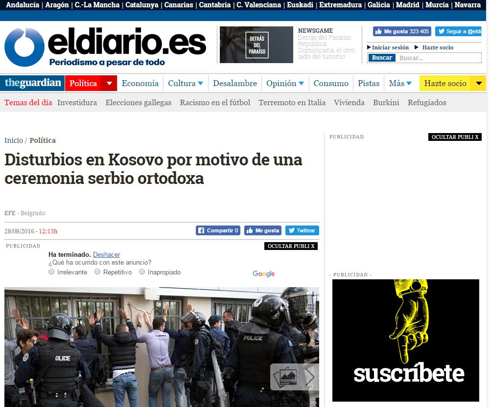 “ Trazira për shkak të një ceremonie ortodokse serbe në Kosovë”, shkruan në titull gazeta eldiario.es, njofton Insajderi.