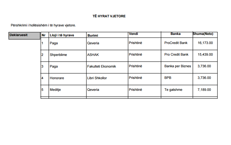 Kryeministri për punën e tij në Qeveri për një vit merr 16,173.00 euro, ndërsa si akademik i merr mbi 15 mijë dhe si ligjërues në Fakultetin Ekonomik 3 mijë e 736 euro.