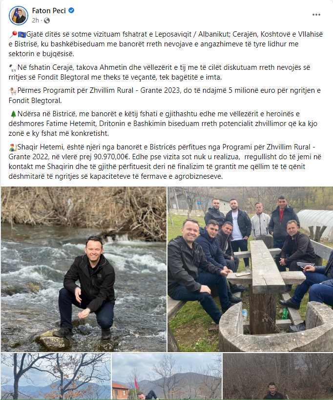 Ai bashkë me qytetarët e Cerajës, Koshtovës së Vllahisë dhe Bistricës ka bashkëbiseduar rreth potencialit zhvillimor që ka kjo zonë, ndërsa tregoi se banori Shaqir Hetemi është përfitues i një granti mbi 90 mijë euro në vitin 2022.