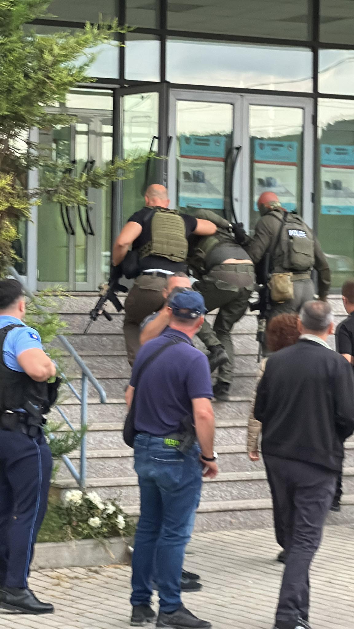 Sulmuesi i arrestuar nga Policia e Kosovës dërgohet në stacionin policor. Janë publikuar fotografi nga momenti kur sulmuesi i prangosur futet në objektin e stacionit.