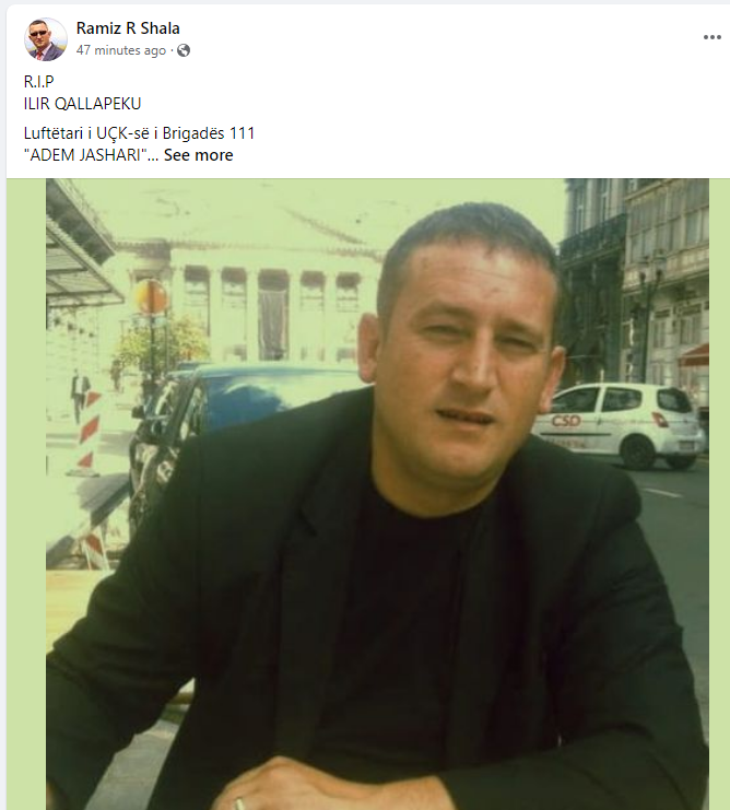 “Tarzani i Tigrave të Zi. Qallapeku ka qenë luftëtar i UÇK-së, i Brigadës 111 “Adem Jashari” i njohur me nofkën “Tarzani”, ka shkruar Shala në postimin e tij në Facebook.