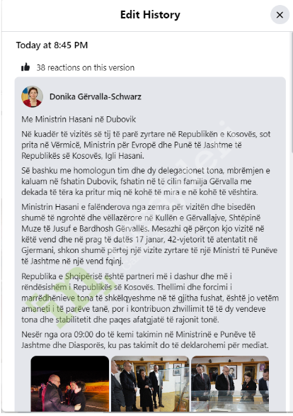 Këtë njoftim, ministrja e ka edituar pasi e ka publikuar fillimisht me gafën e radhës duke e shkruar ashtu siç duhet.