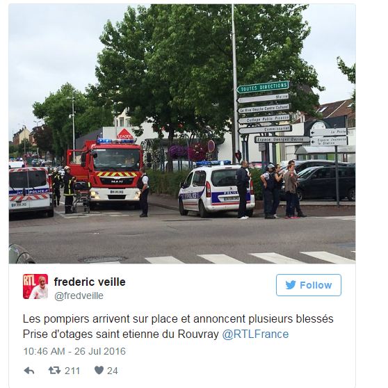Policia franceze ka bërë të ditur se katër deri në gjashtë persona janë mbajtur peng nga dy burra të armatosur me thika në një kishë në rajonin verior të Normandisë së Francës.