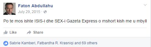Në një postim tjetër të vitit 2015 ai e kishte cilësuar portalin Express si portal “pornografik” dhe “ekstremist”.