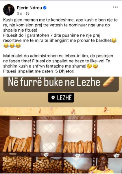 Kryetari i Lezhes ka postuar një shitëse me ngjyrë në një furrë buke në Lezhë duke bërë kështu meme me këtë situatë.