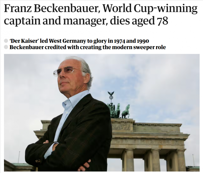Franz Beckenbauer, i konsideruar gjerësisht si një nga futbollistët më të mirë të të gjitha kohërave dhe një nga vetëm tre futbollistët që fitoi Kupën e Botës si lojtar dhe trajner, ka vdekur në moshën 78-vjeçare.