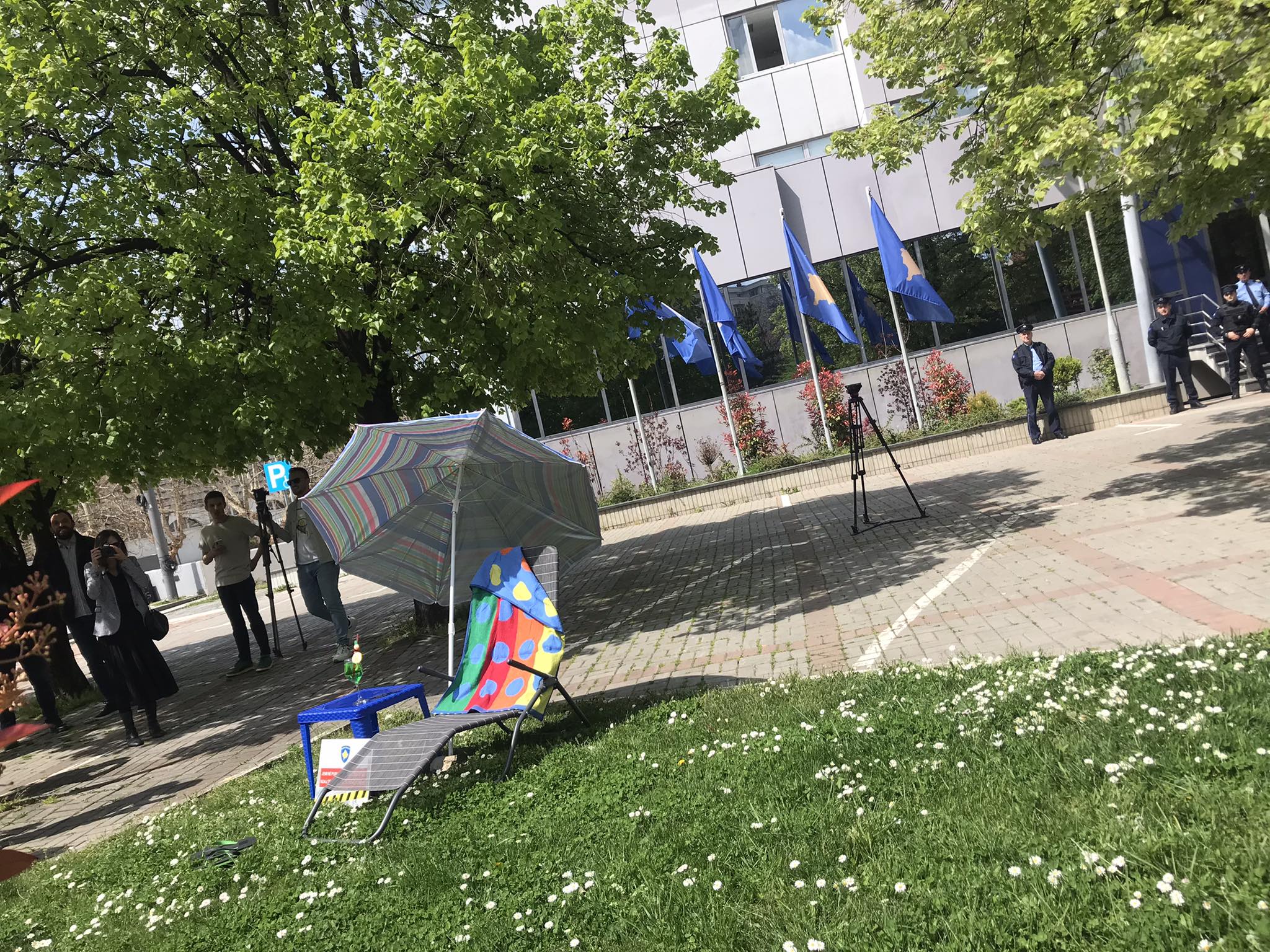 Në këtë aksion para Qeverisë u vendosën ulëse pushimi dhe shezllon deti.