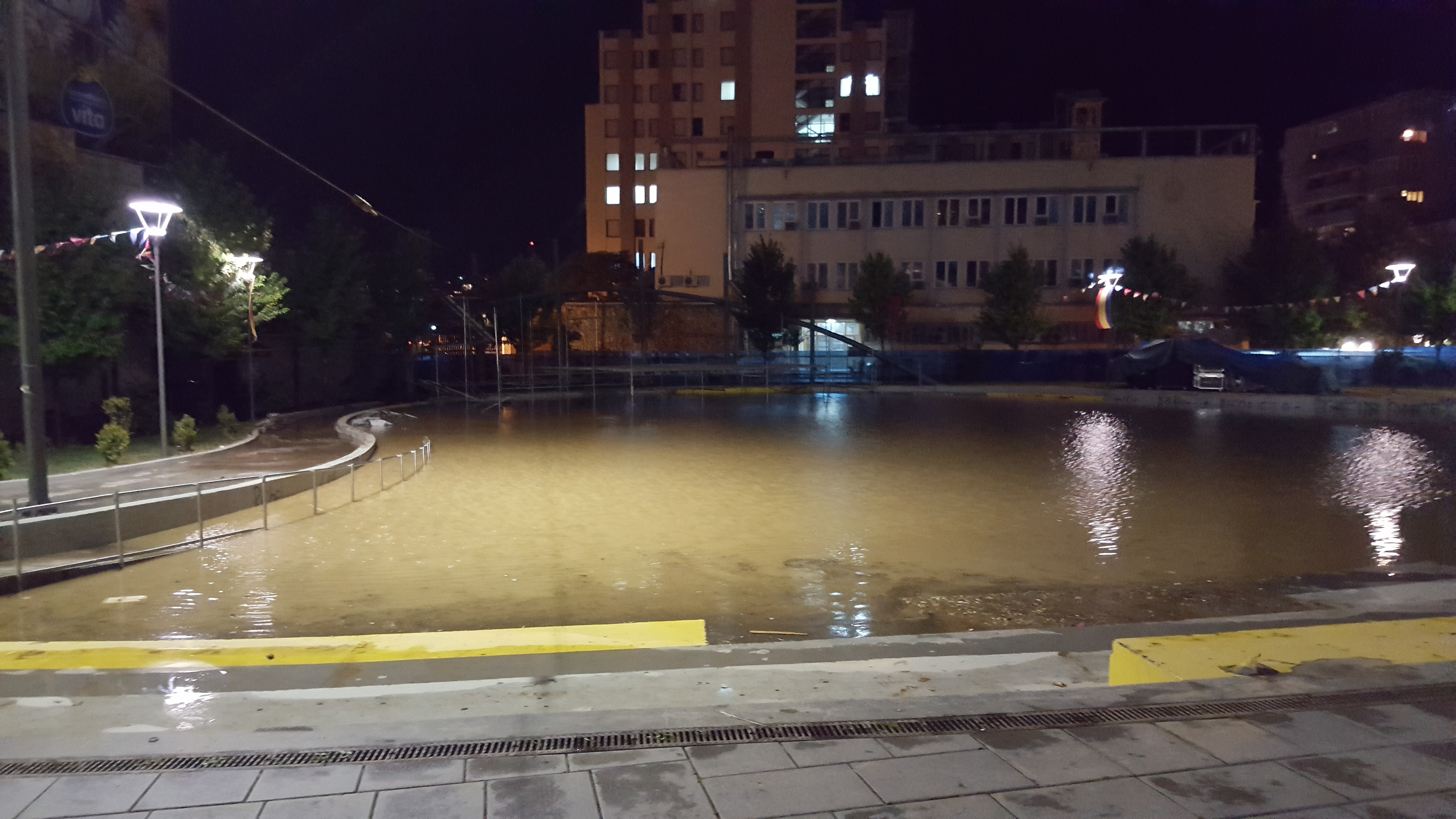 Kanë mjaftuar reshjet e shiut që zgjatën disa minuta që hapësira e amfiteatrit në sheshin Zahir Pajaziti të mbushet me ujë.