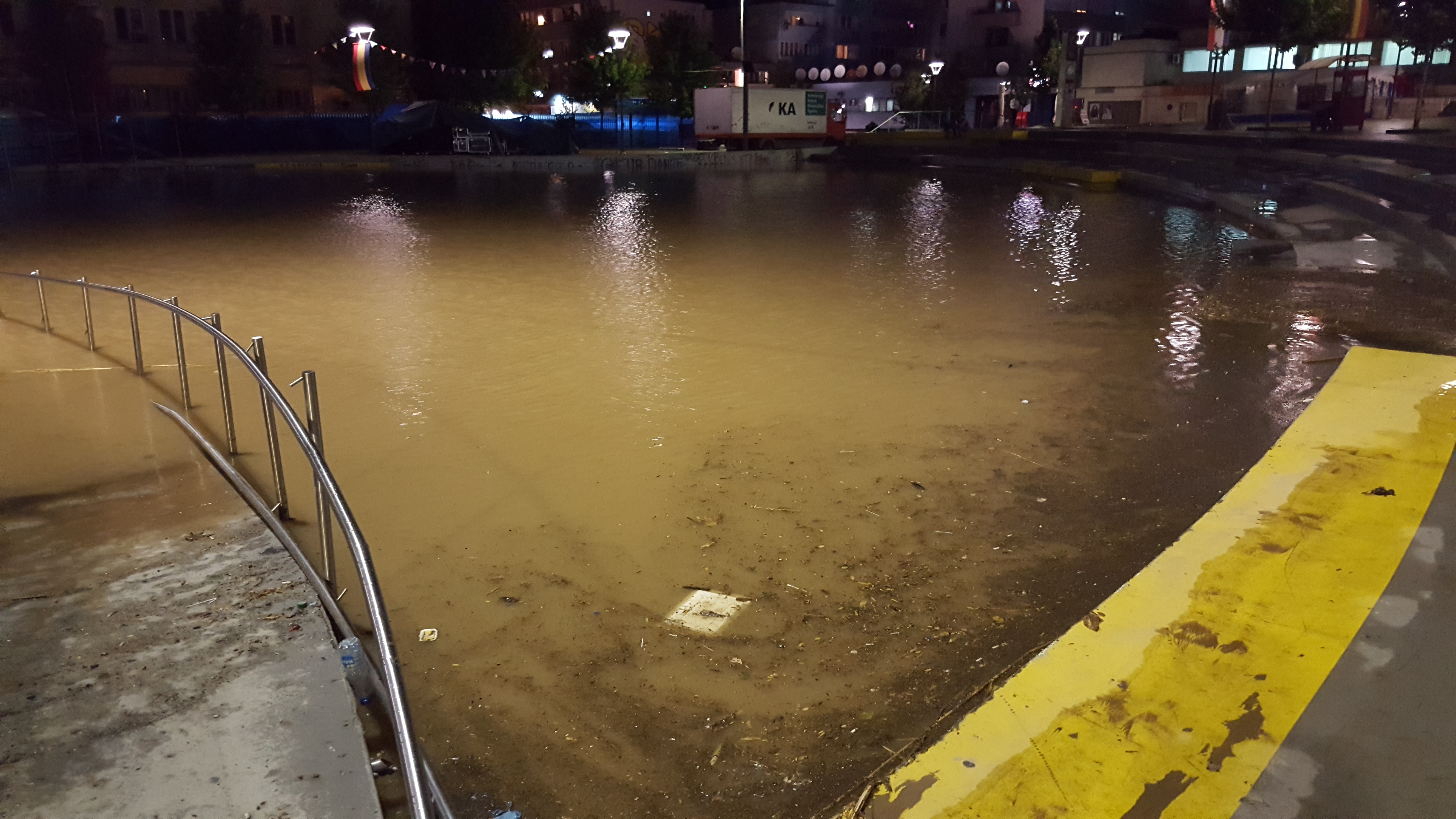 Hapësira e amfiteatrit ngjitas me hotel Grand është mbushur me ujë dhe ka dalë jashtë funksioni, në ndërkohë që asnjë nga ekipet për pastrimin e saj nuk kanë dalë në vendin e ngjarjes./Insajderi.com