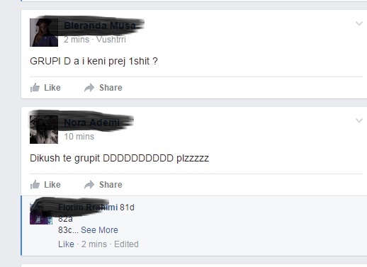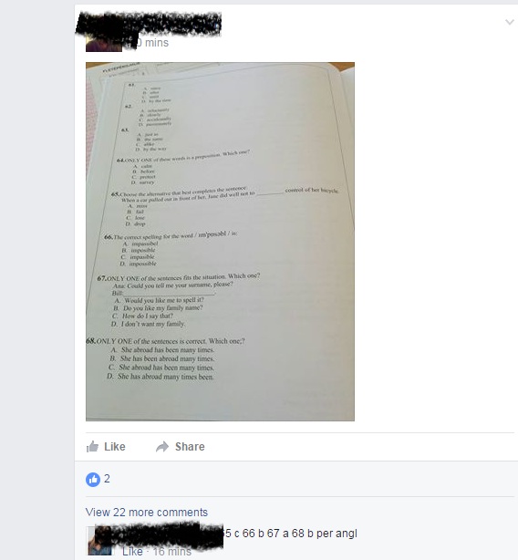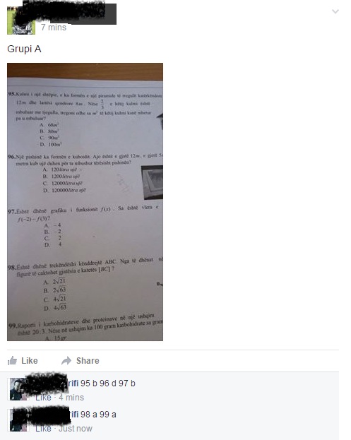 Nxënësit kanë bërë fotografi të përgjigjeve të cilat ata kanë rrumbullakuar dhe i kanë postuar nëpër disa faqe në Facebook.