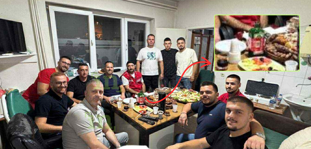 Nga një fotografi e siguruar nga Gazeta Insajderi, shihet qartë se në zyrën ku është mbajtur festa gjendet një tavolinë e shtruar me ushqime dhe një shishe e pijeve alkoolike “Jägermeister”, e kamufluar me një ambalazh të Coca-Colës. Në foto, të paktën tre persona shihen me uniforma pune – që nënkupton se ndodheshin në orar zyrtar – duke ngrënë e duke festuar në zyrat e Urgjencës, në katin e parë të objektit të QKMF-së në Pejë.