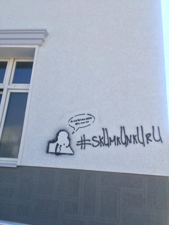 Sot në mëngjes jashtë këtij Teatri, në një prej pjesëve ballore të objektit është parë një grafit me mbishkrimin “#S`kum kunkuru”, një thënie e dalë së fundmi nga përgjimet e publikuara nga Insajderi, gjegjësisht fjalë këto të thëna nga Bahri Hyseni të cilin Adem Grabovci mundohet ta bëj anëtar bordi në KOSTT.