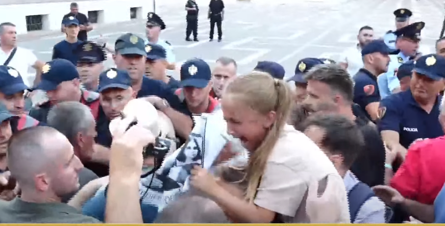 Situata ka sjellë dhe frikë te fëmijët e pranishëm që kanë nisur të qajnë. Përplasja ka zgjatur pak minuta, teksa policia është vendosur gardh për të mos lejuar avancimin e protestuesve.