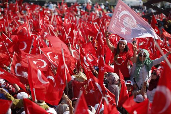 “Demokracia dhe dëshmorëve ‘Rally” është kulmi i tre javëve të demonstratave të natës nga përkrahësit e zotit Erdogan në të gjithë vendin.