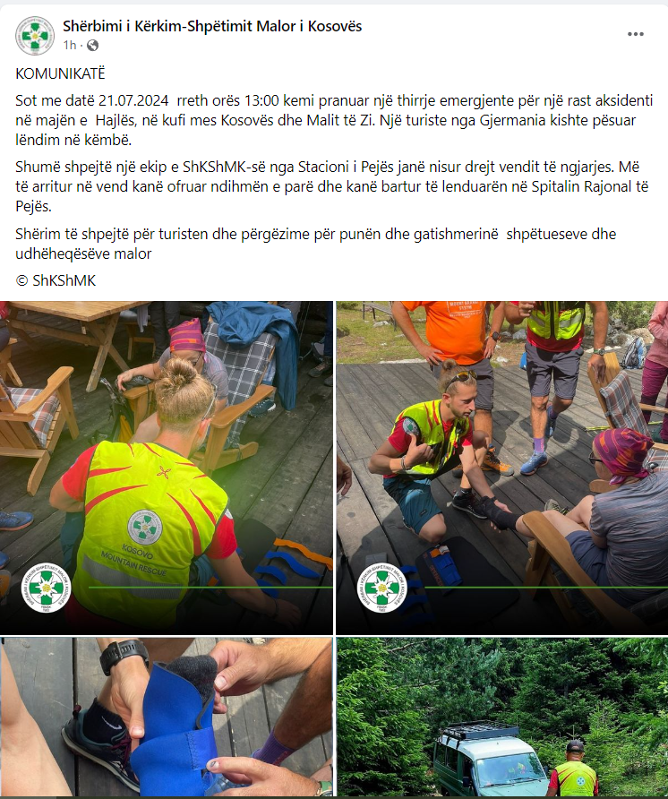 Pasi arritën në majën e Hajlës, ata ofruan ndihmën e parë për turisten e lënduar dhe më pas e transportuan atë në Spitalin Rajonal të Pejës për trajtim të mëtejshëm.