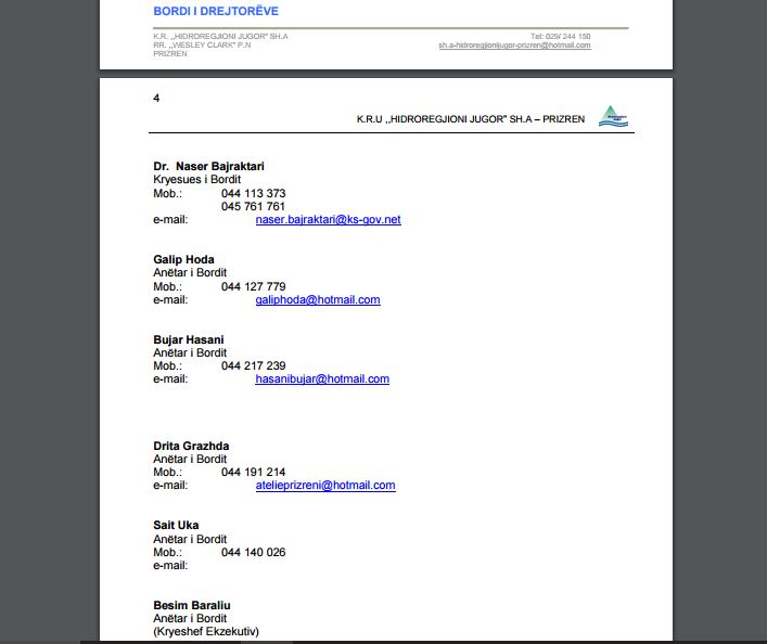 Sipas raporteve të punës vjetore të Ujësjellësit në Prizren, të viteve 2011, 2012 dhe 2013, del se vetëm një emër nga 5 anëtarët të Bordit të Drejtorëve nuk është përmendur në bisedën mes Adem Grabovcit dhe Njazi Kryeziut.