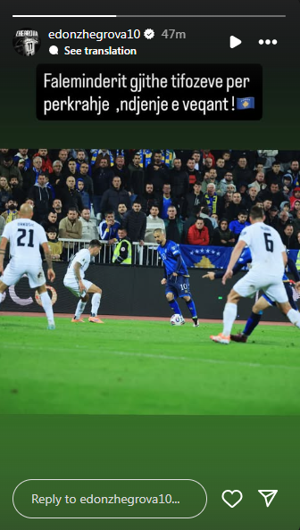 Ai madje i ka falëndëruar edhe tifozët e kombëtares dardane që ishin të pranishëm në stadium, në rrjetin social “Instagram”.